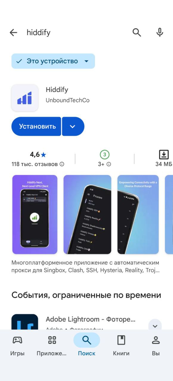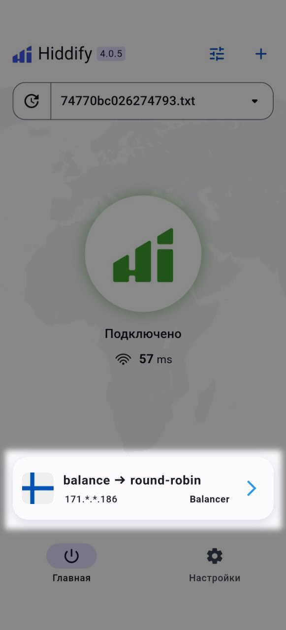 Вернитесь в Hiddify и вставьте URL из буфера обмена.