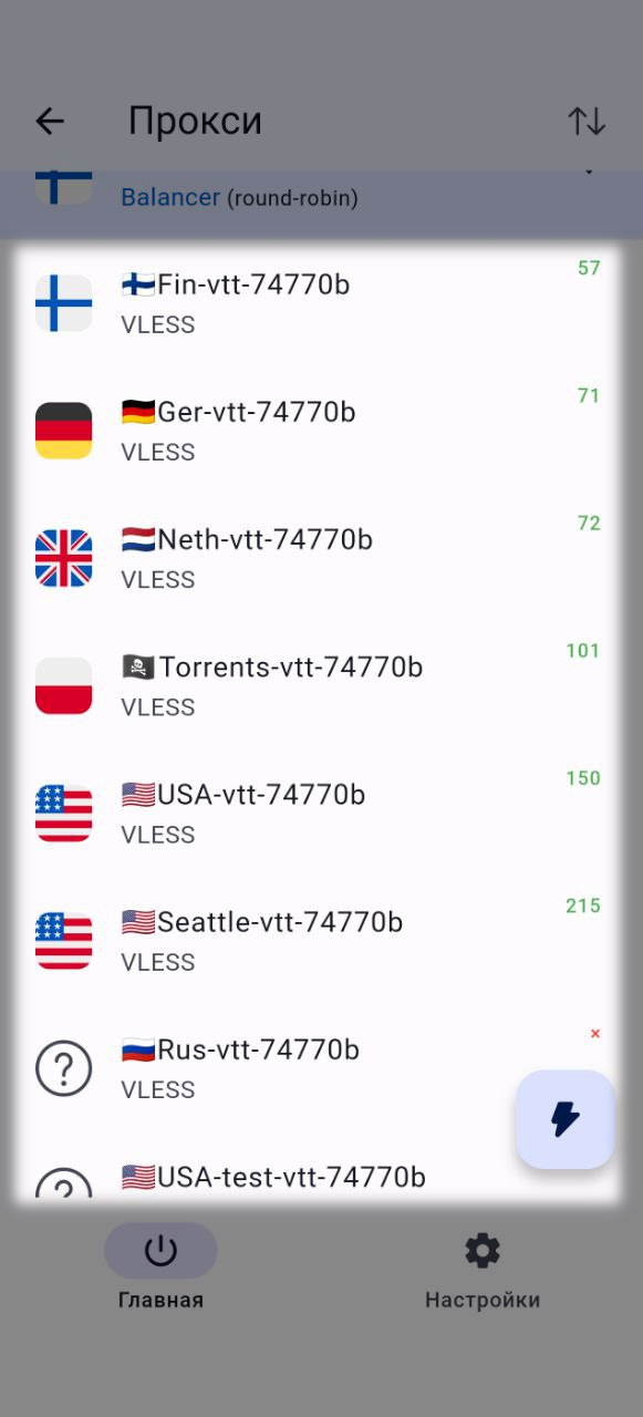Рекомендуем регулярно нажимать на круглую стрелку, чтобы приложение обновляло список доступных серверов/локаций.